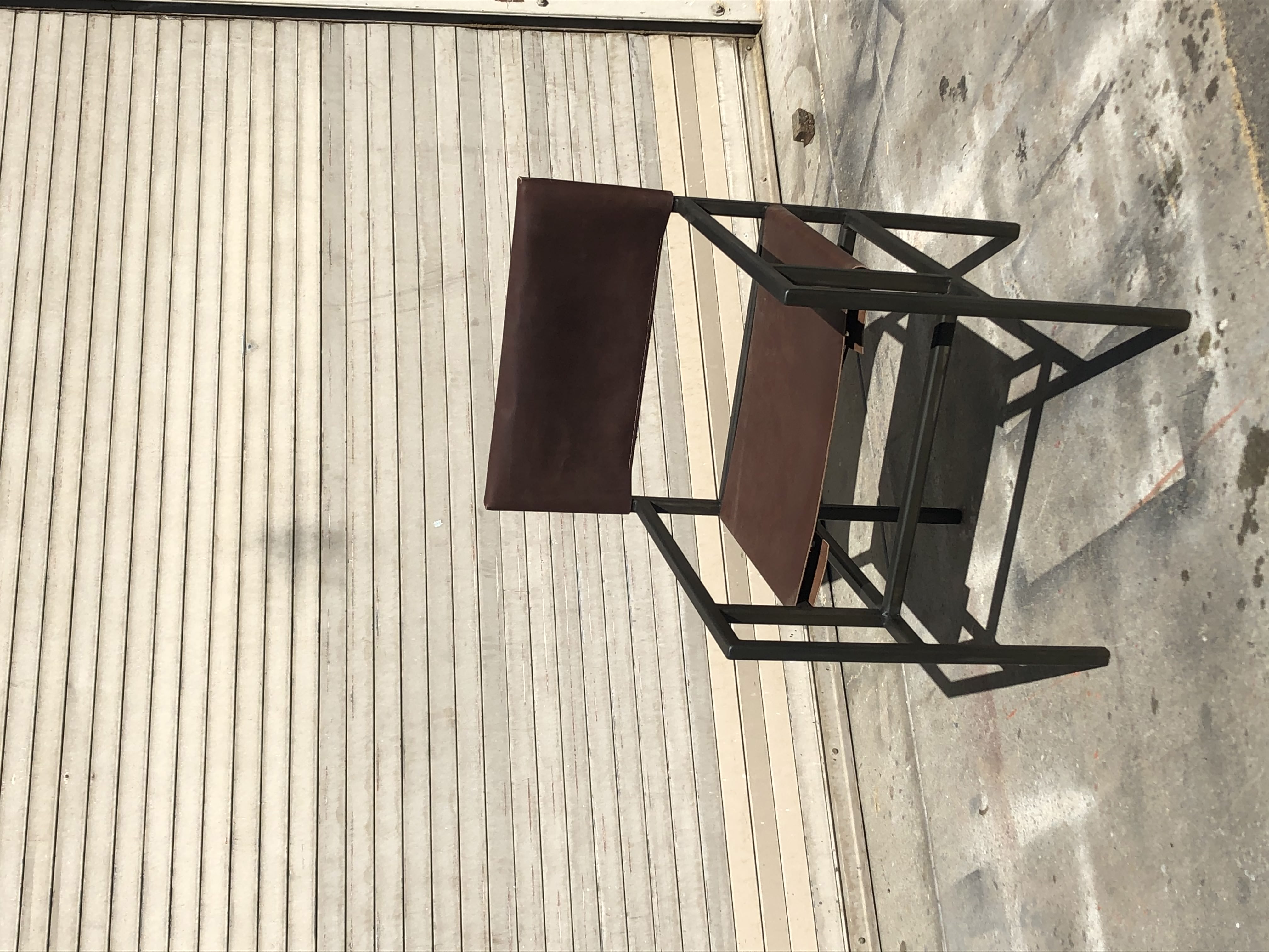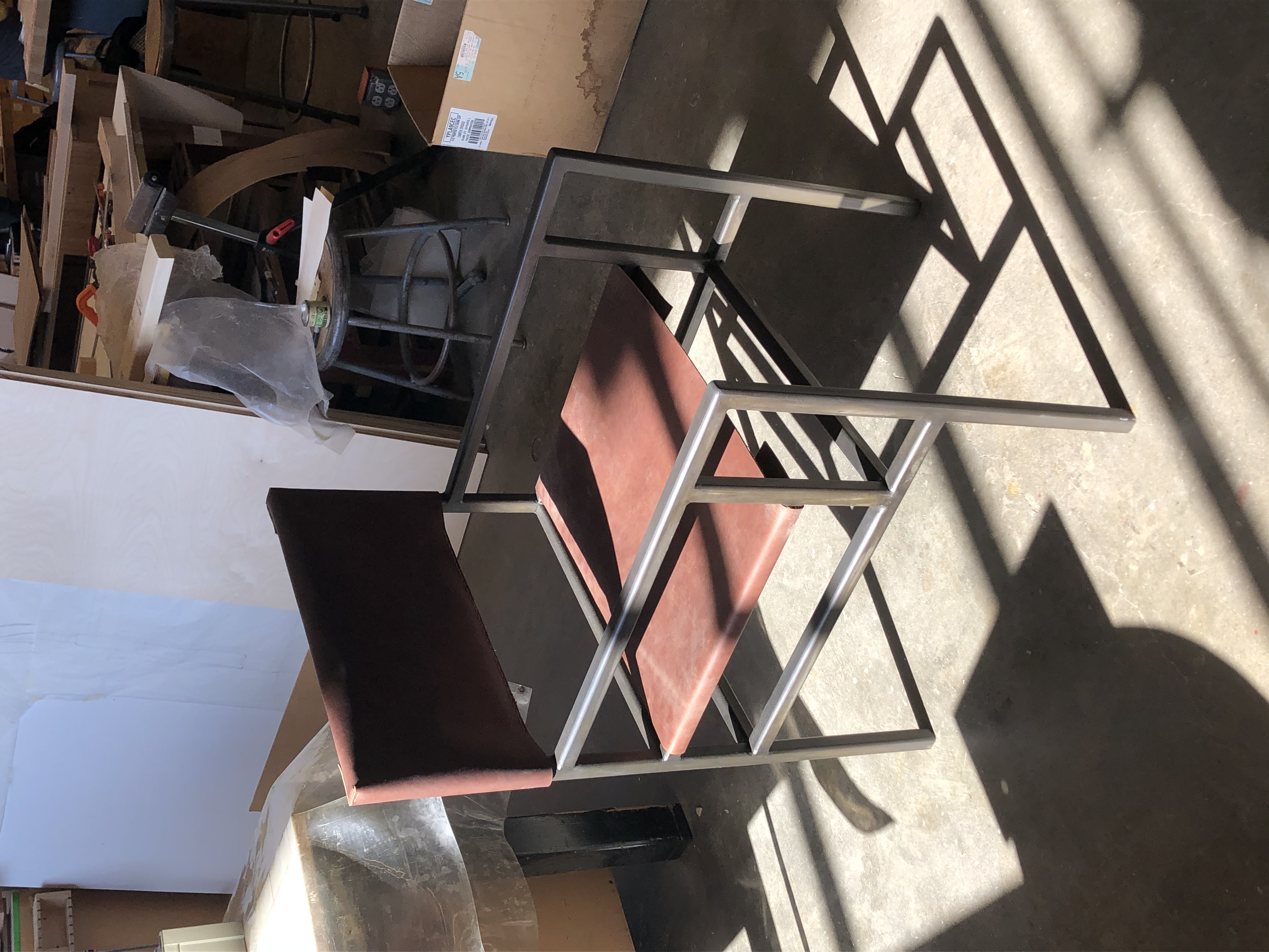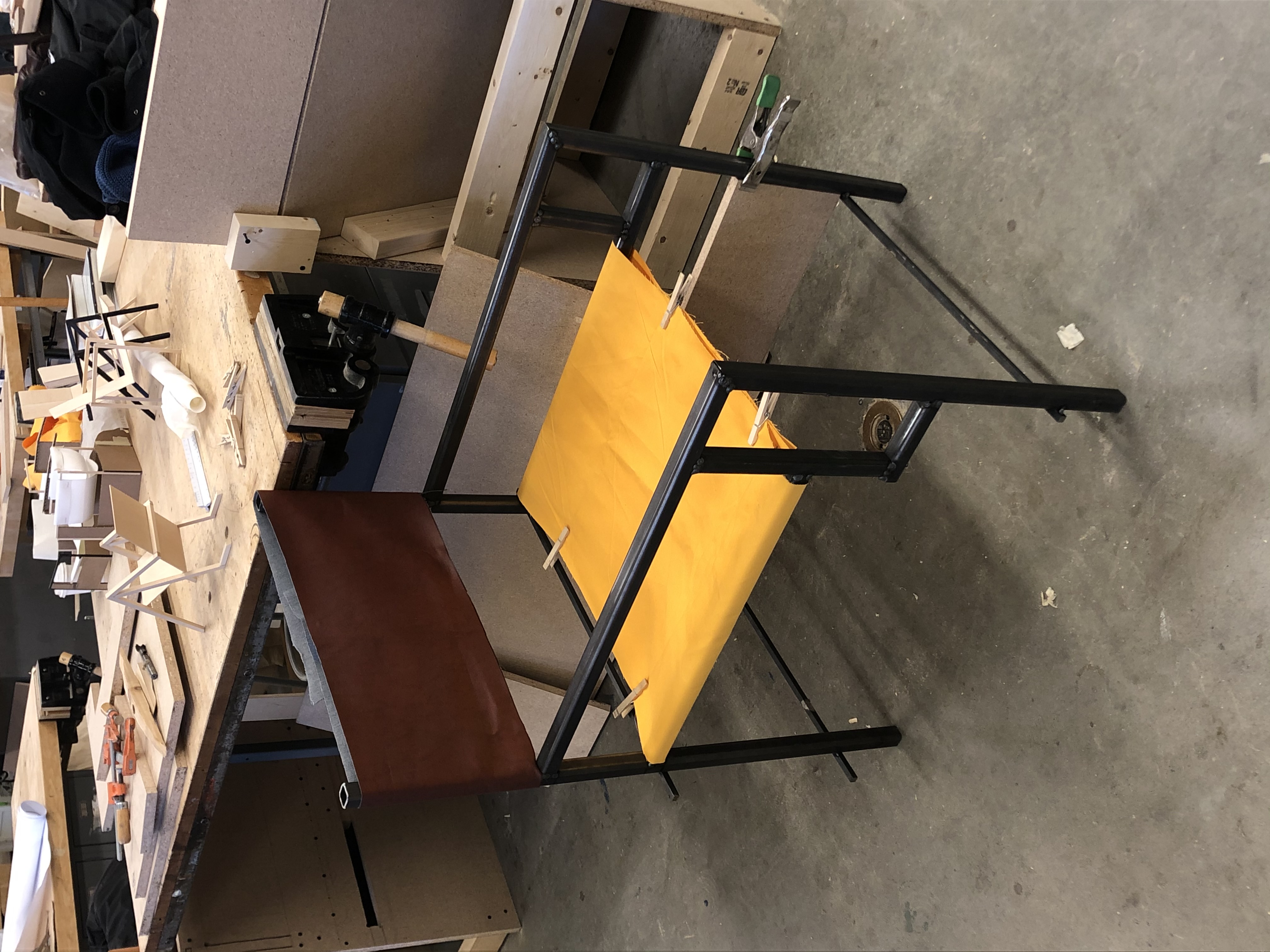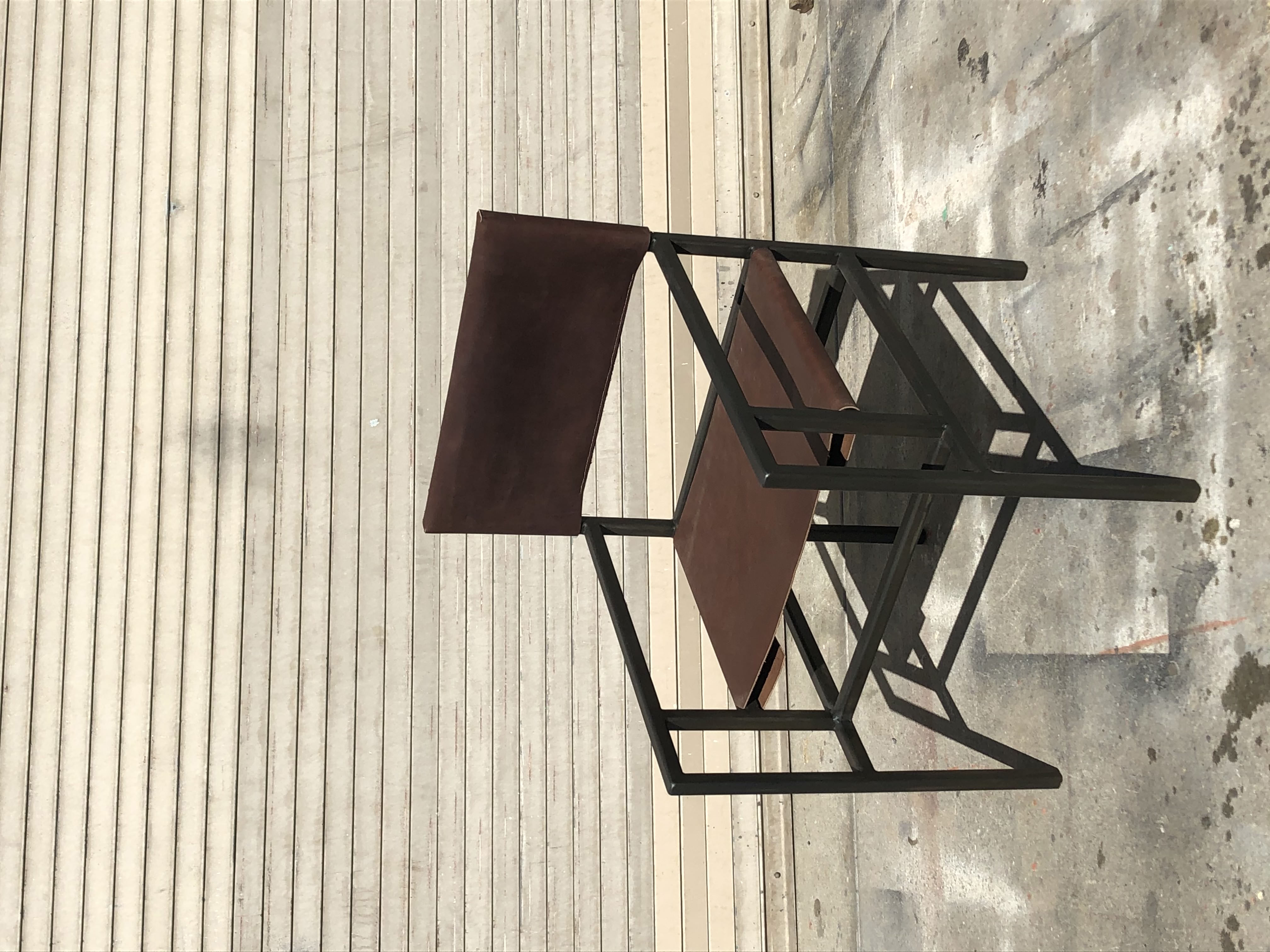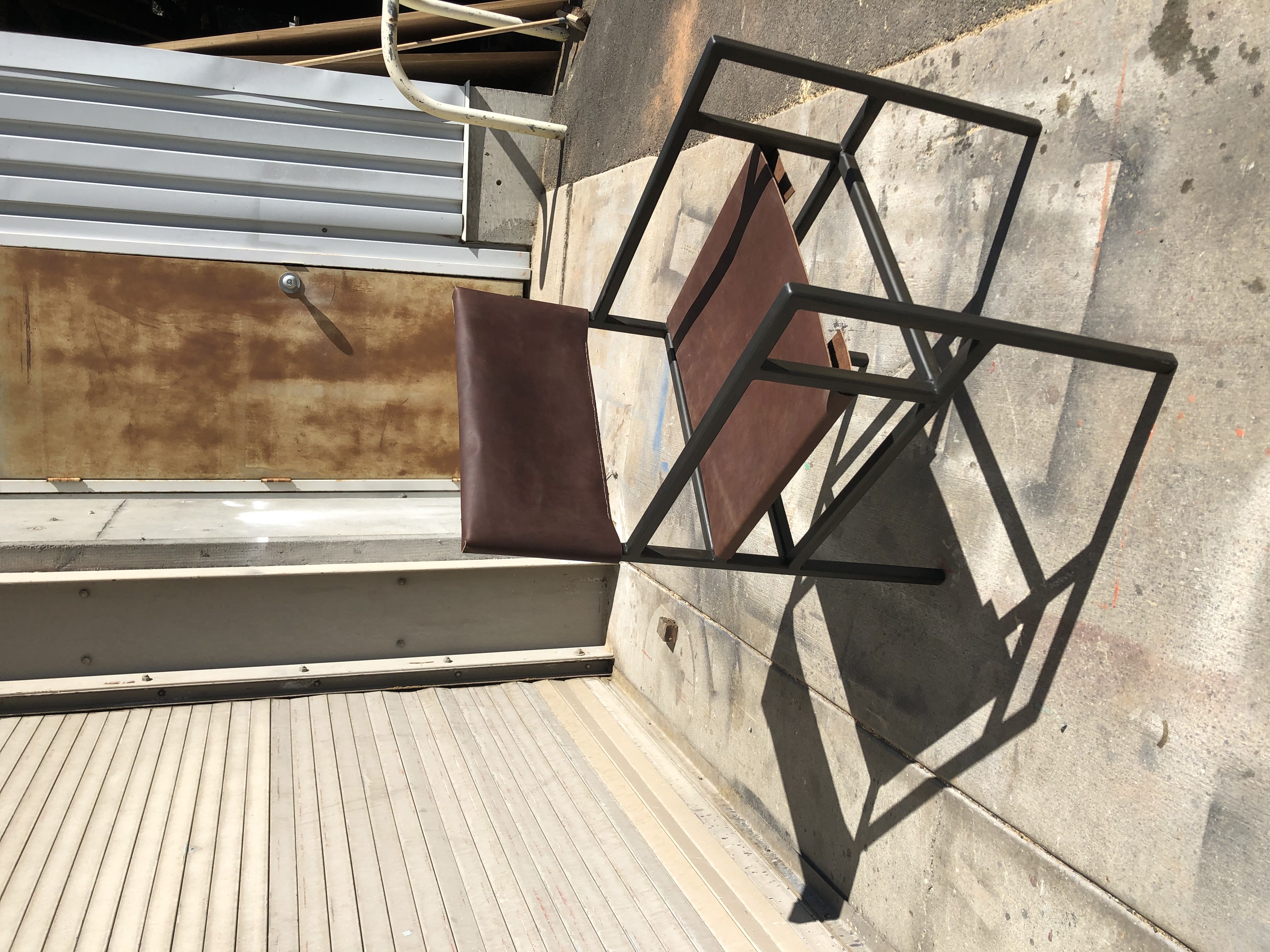 Designed, prototyped, and fabricated in a 3-month timeframe. Welded frame made of hollow square steel tubing with hand-stitched leather seat and backrest.