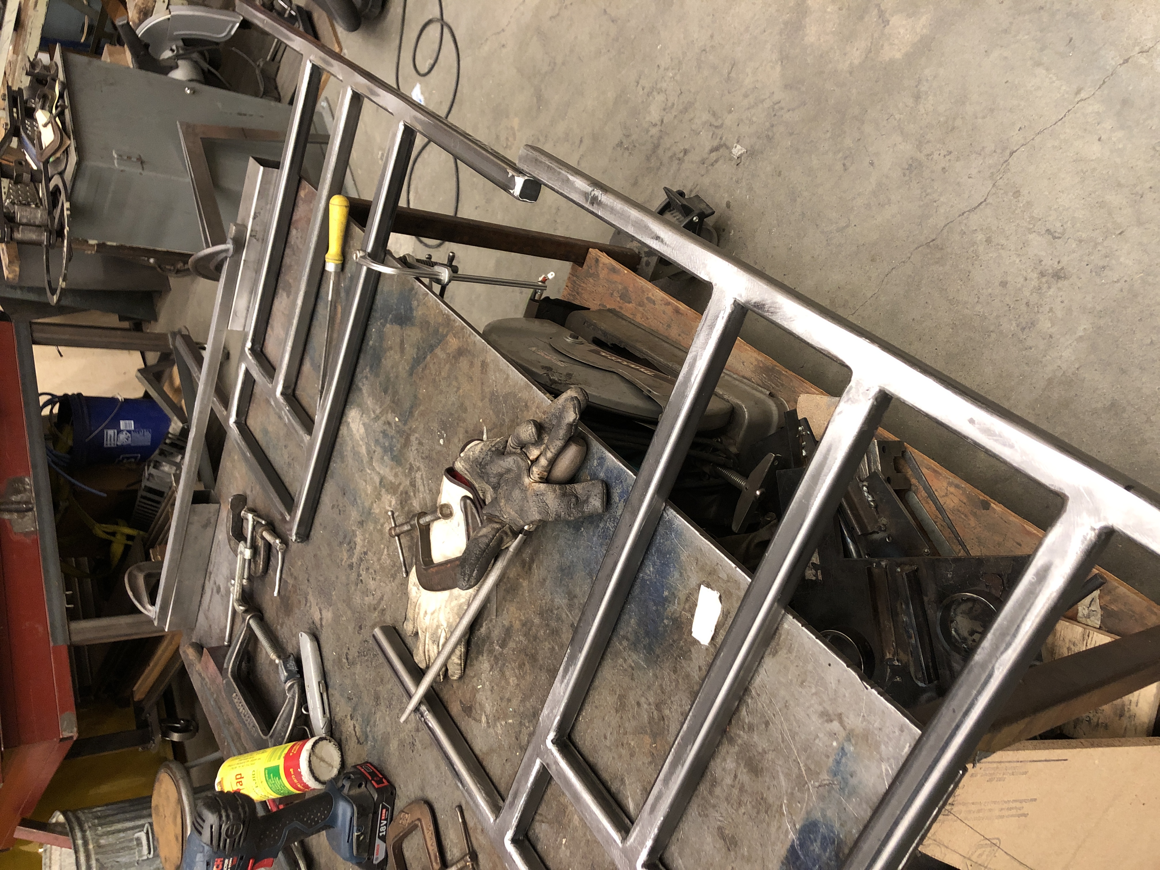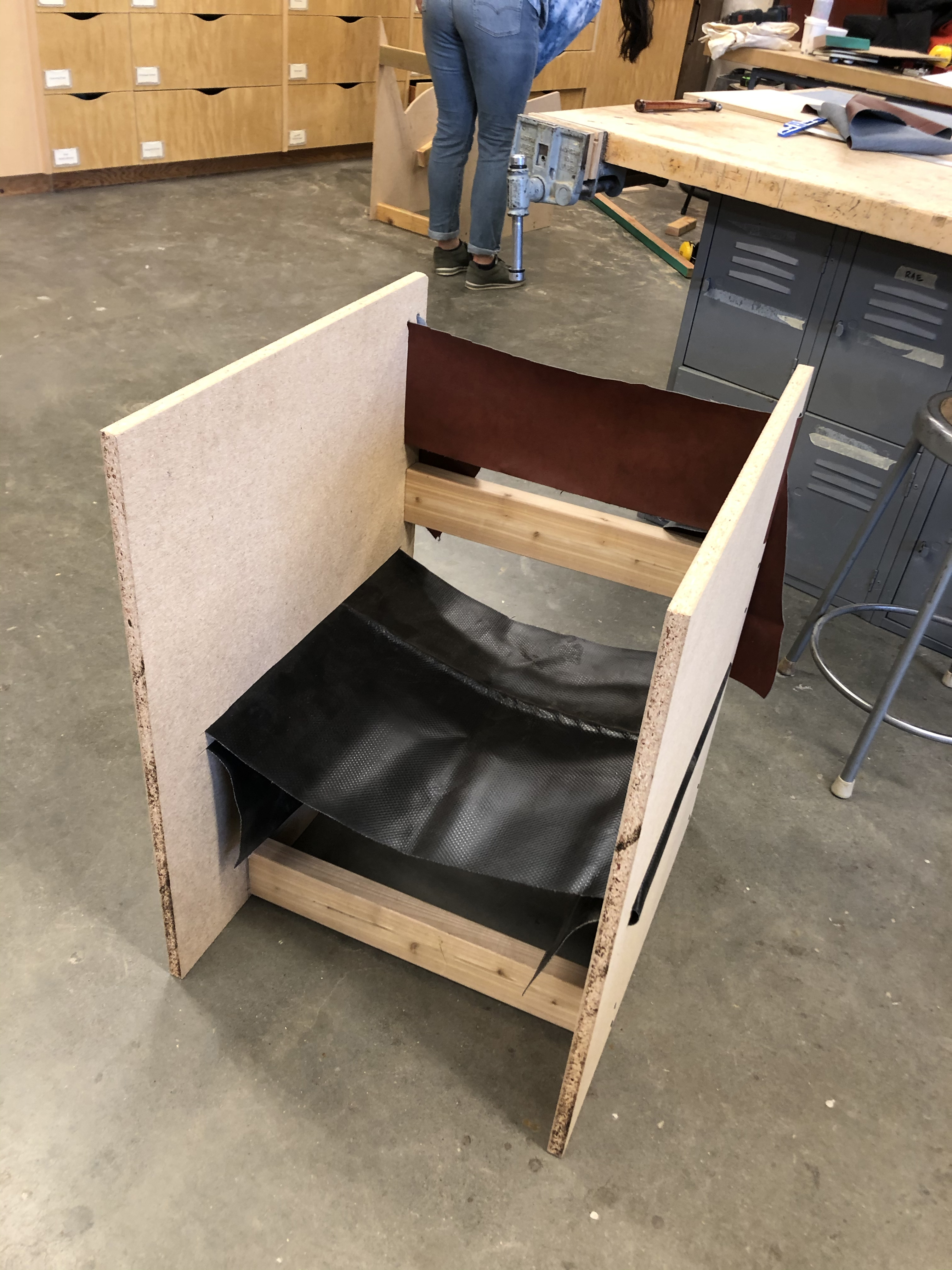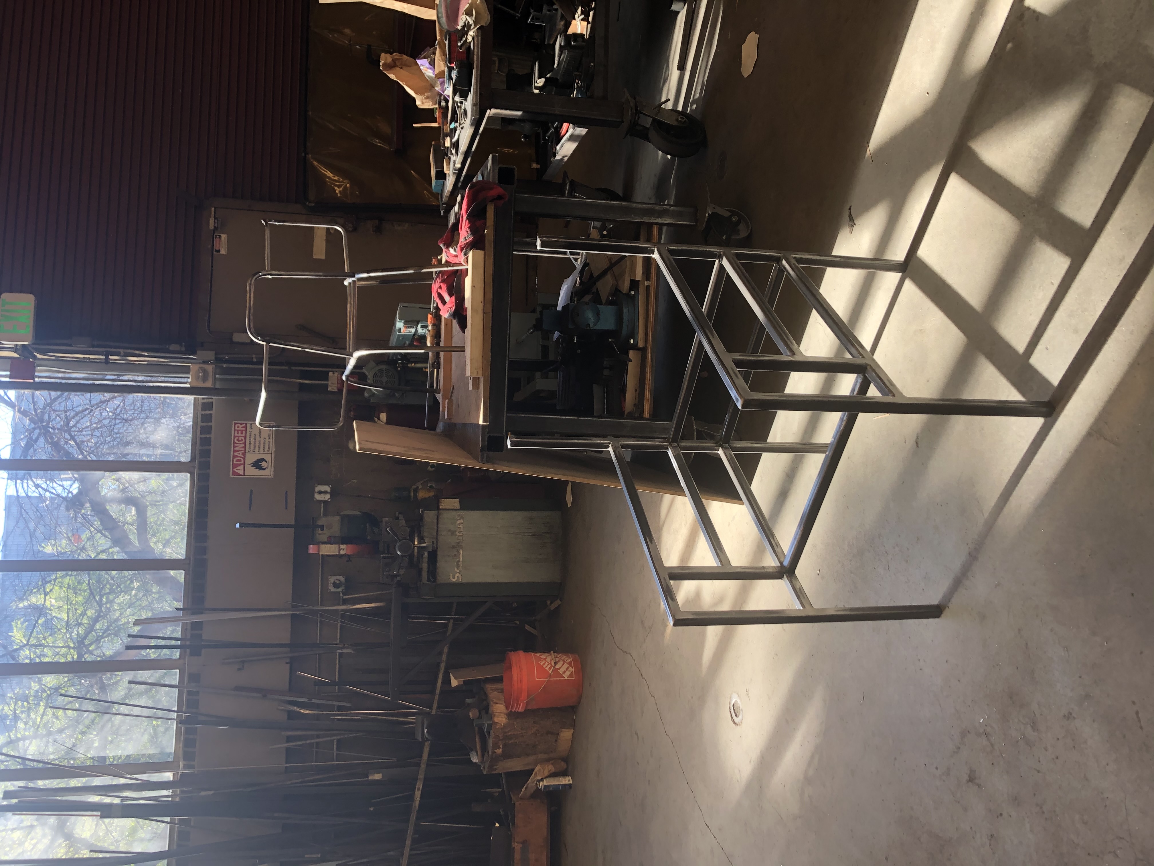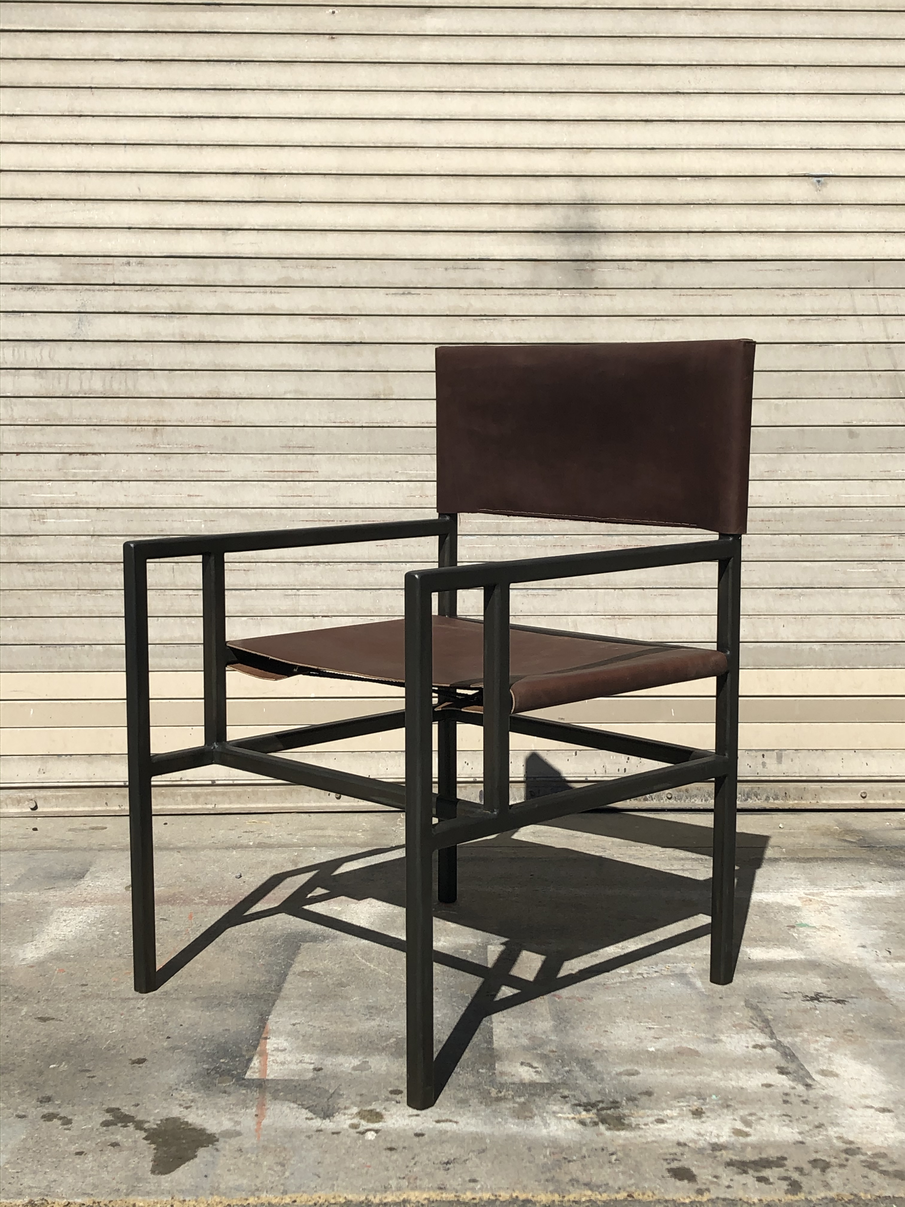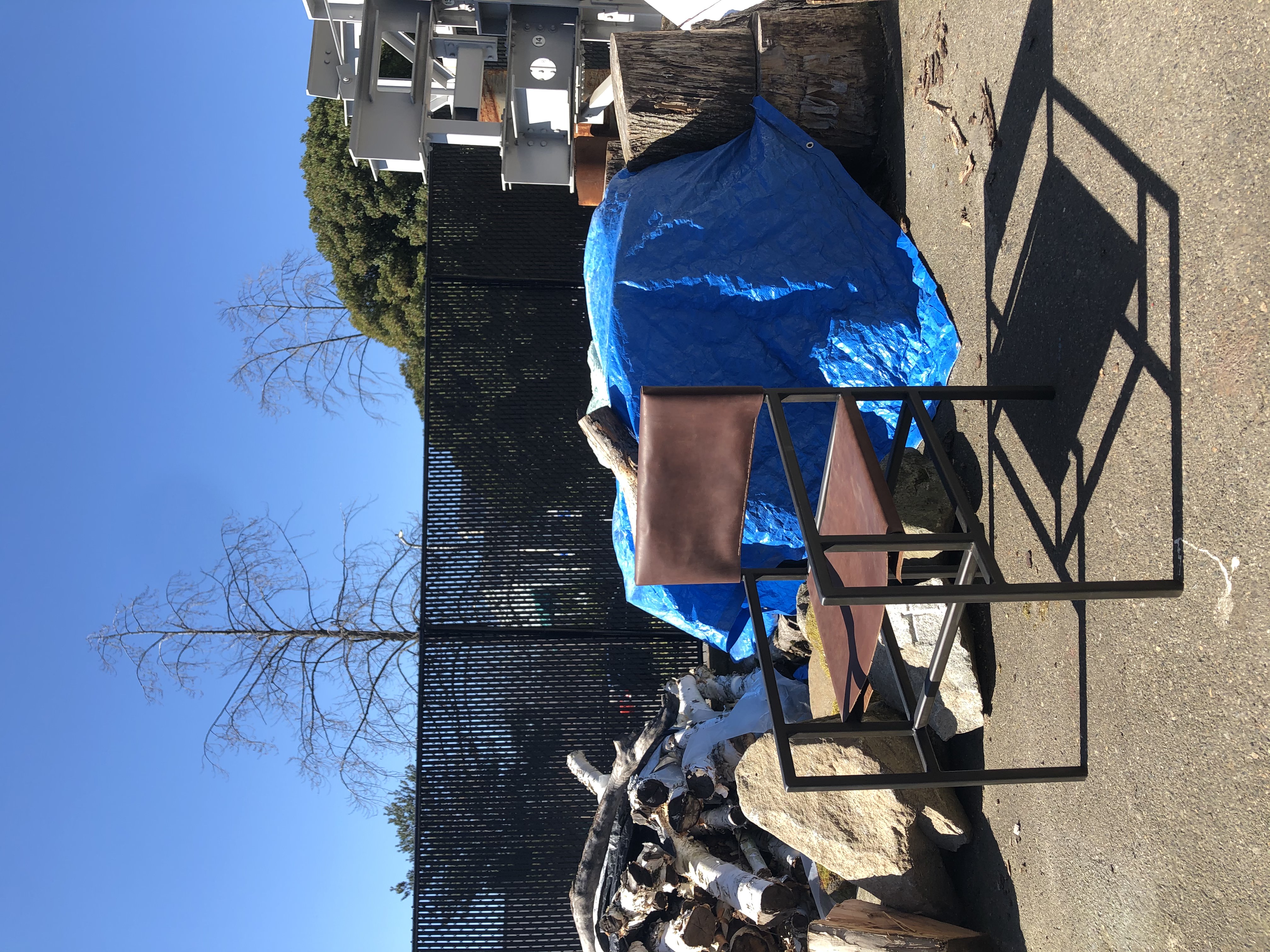 Designed, prototyped, and fabricated in a 3-month timeframe. Welded frame made of hollow square steel tubing with hand-stitched leather seat and backrest.